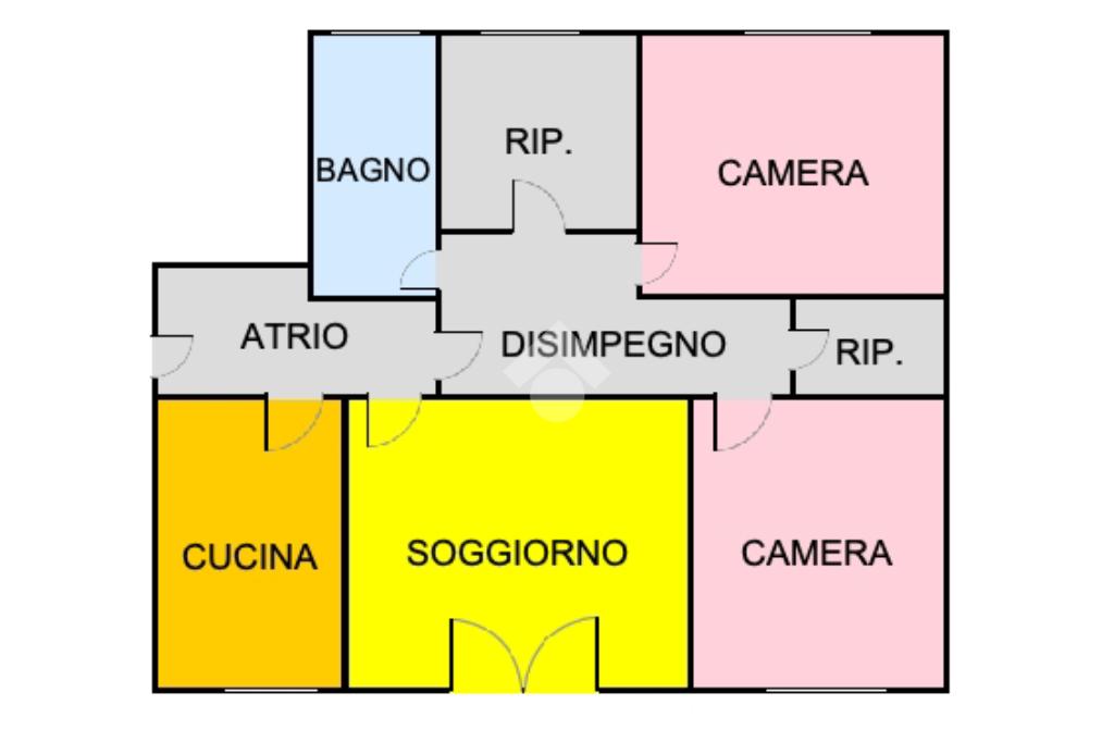 Appartamento con cucina, soggiorno, tre camere, bagno, disimpegno e ripostiglioSecondo piano
